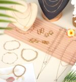Customers find the jewelry set pretty and appreciate its good variety. However, the quality receives negative feedback, with multiple customers reporting that pieces break easily and tarnish from inception. Moreover, the color is problematic, with several customers noting that necklaces turned their necks green and earrings weren’t the same color. The value for money aspect is mixed, with some finding it worth the price while others disagree.