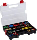TOOL ORGANIZER SET: 2 piece clear lid toolbox organizer set. The tool box organizer set contains 2 x 14” / 37cm tool organizers. The tool organizer box contains 20 separate compartments. It’s the perfect container set for storing small parts, bolts, nuts, nails, screws and small tools. There’s 12 removable dividers which allows for greater flexibility when arranging your tool storage. The clear cover allows you to view your tools easily.