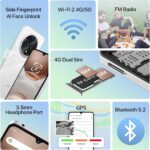 𝗠𝗼𝗿𝗲 𝗙𝗲𝗮𝘁𝘂𝗿𝗲𝘀: Supports AI face and fingerprint unlock, Wi-Fi 2.4G/5G, FM Radio, Bluetooth 5.2, GPS, Glonass, Beidou, Galileo, and dual SIM (2 Nano SIM cards or 1 Nano SIM + 1 microSD card)