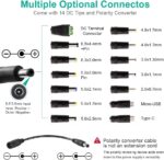 Package Includes: 1 x 3~24V 3A universal ac/dc adapter, 14 x DC tips, 1x reverse polarity converter, 1x alligator clip test lead, 1x 4-way power splitter cable. If you have any questions, please feel free to contact us via Amazon, and we are here for you