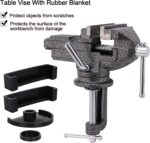 【Universal Bench Clamp Easy To Use And Install】 Round base and swivel lever design allows the vise to quickly grip a table or object, A table vise with a rubber blanket, if you need to clamp fragile items such as glass, you can attach the rubber blanket to the clip, which can effectively protect objects from scratches. Rubber blankets also protect the surface of a table or worktop from damage and leave no marks on the surface.