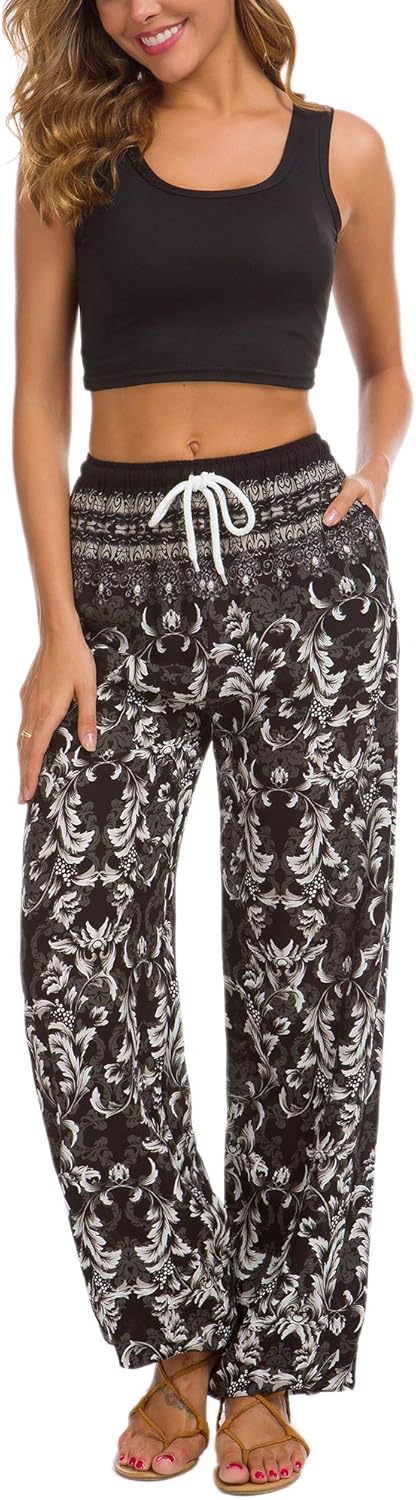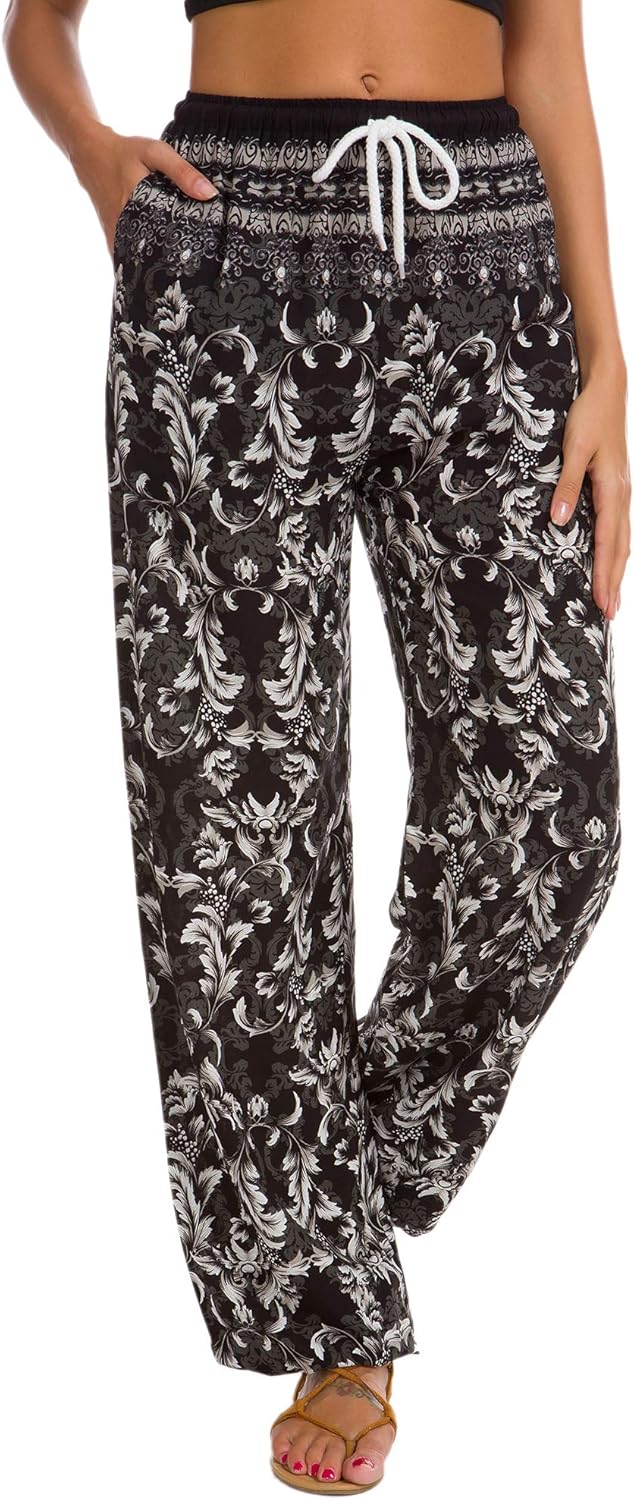 Urban CoCo Women’s Floral Print Summer Boho Pants Harem Beach Vacation Pants