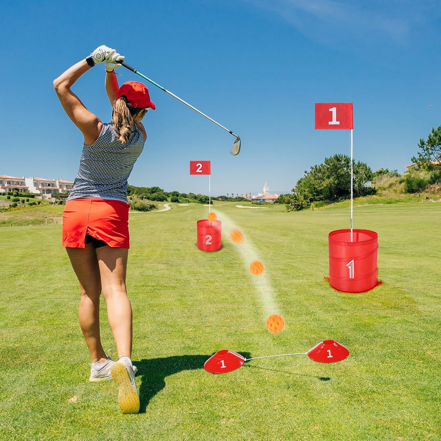 Complete Accessories: The back yard golfing game set includes 9 balls, 6 holes, and other accessories, along with a 600D Oxford cloth storage bag, providing everything you need for endless fun in one purchase. Tips: Clubs are not included. We recommend lightweight clubs measuring 47.24 in – 59.06 in / 1200 mm – 1500 mm.
