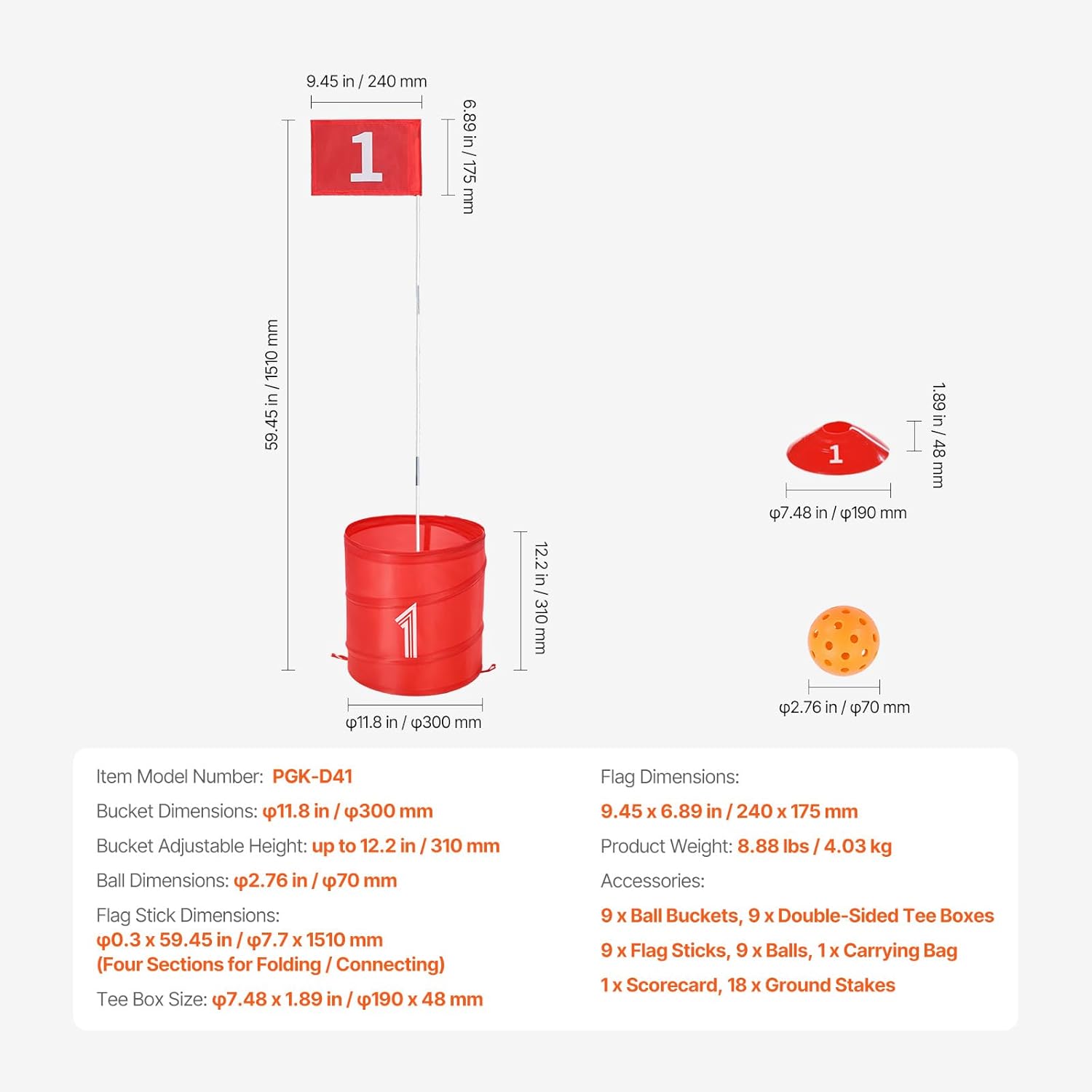 Complete Accessories: The back yard golfing game set includes 9 balls, 9 holes, and other accessories, along with a 600D Oxford cloth storage bag, providing everything you need for endless fun in one purchase. Tips: Clubs are not included. We recommend lightweight clubs measuring 47.24 in – 59.06 in / 1200 mm – 1500 mm.