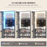 [2 Makeup Mirror] – An large full length mirror is convenient for trying your clothes and checking your outlook. The outside full-screen mirror is clear and real, without distorting the mirror effect. Built-in square mirror with led lights surrounded, which provides you enough brightness to make up and helps choose the most suitable jewelry