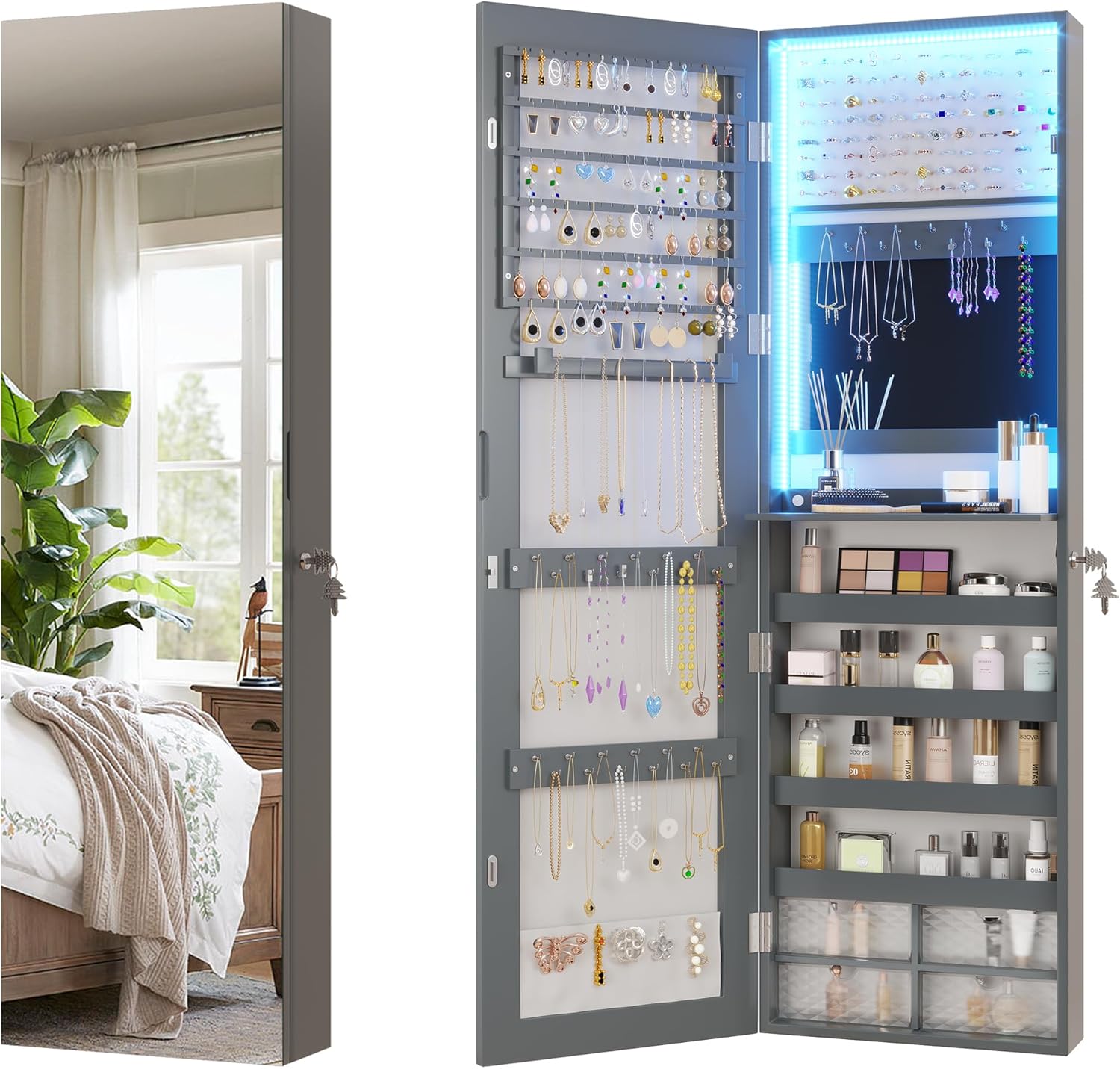 [Lockable & Practical] Ensure the perfect condition of every makeup and jewelry piece, as this jewelry mirror cabinet comes with a lock and 2 keys to keep children out and prevent unwanted opening. The door of this jewelry box opens widely for easy access