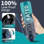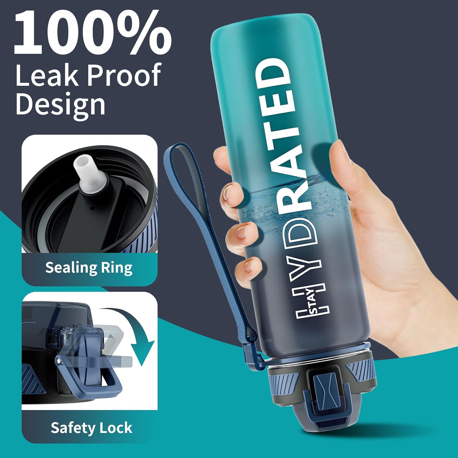 Easily Open & Leakproof: Our motivational water bottles flip-top lid is designed with a secure lock, which effectively preventing dust and leak-proof. It can be easily opened with one hand. Our sports water bottles for school has a silicone nozzle with a straw inside to prevent turbulent water flow
