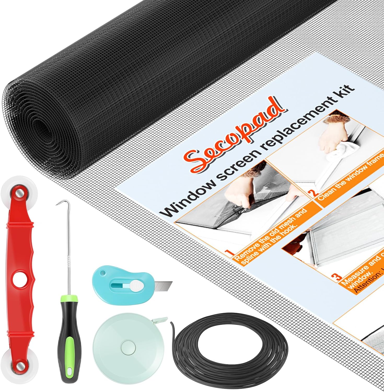 Easy To Install: Secopad window screen repair kit includes necessary tools and accessories: screen spline, screen roller, removal hook, screen cutter and ruler. These make it easier and faster to replace while helping you save money and time