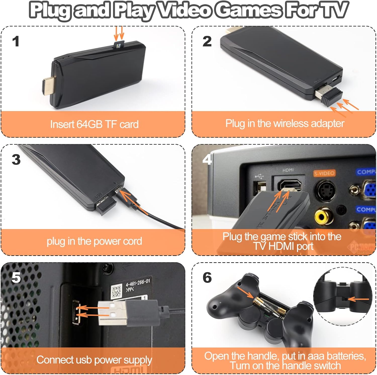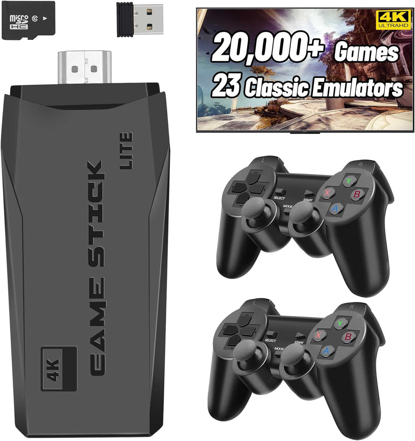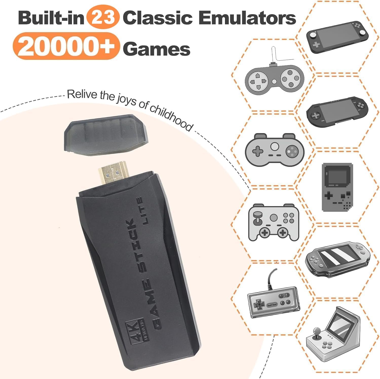 Wireless Retro Game Console, Retro Game Stick with Built-in 23 Emulators, 20,000+ Games, 4k Hdmi Output, and 2.4GHz Wireless Controller, Plug and Retro Play Video Games for Tv (64 GB)