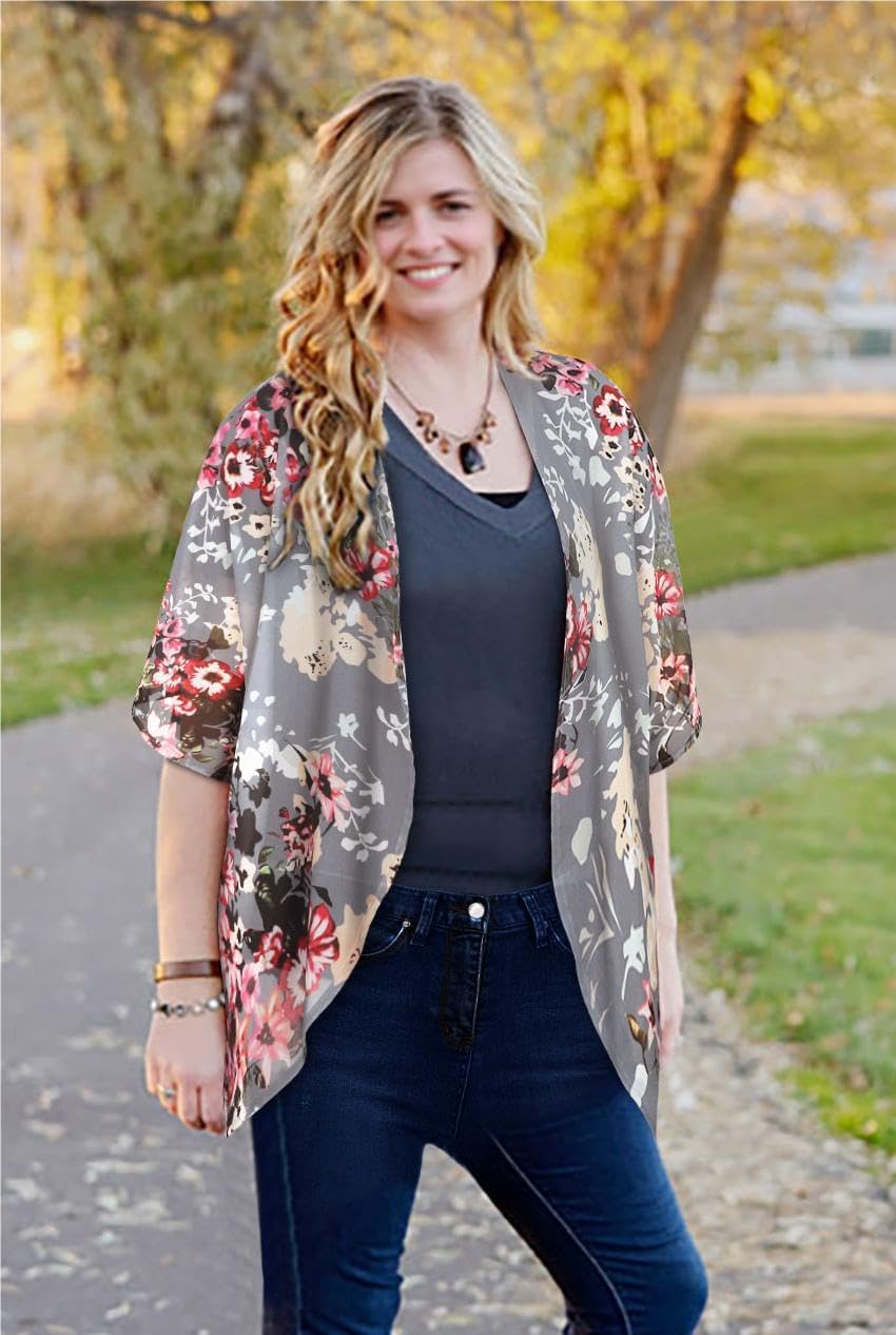 Customers find the kimono cardigan comfortable, lightweight, and good value for money, appreciating that it can be packed compactly for travel. They like its versatility, being able to dress it up or down and pair it with various outfits, and one customer mentions it works well as a coverup with sleeveless dresses. The material quality receives mixed feedback, with some praising the quality while others find it cheap and thin, and the color accuracy is also mixed, with some noting the colors don’t match descriptions. The sizing runs small according to multiple customers.
