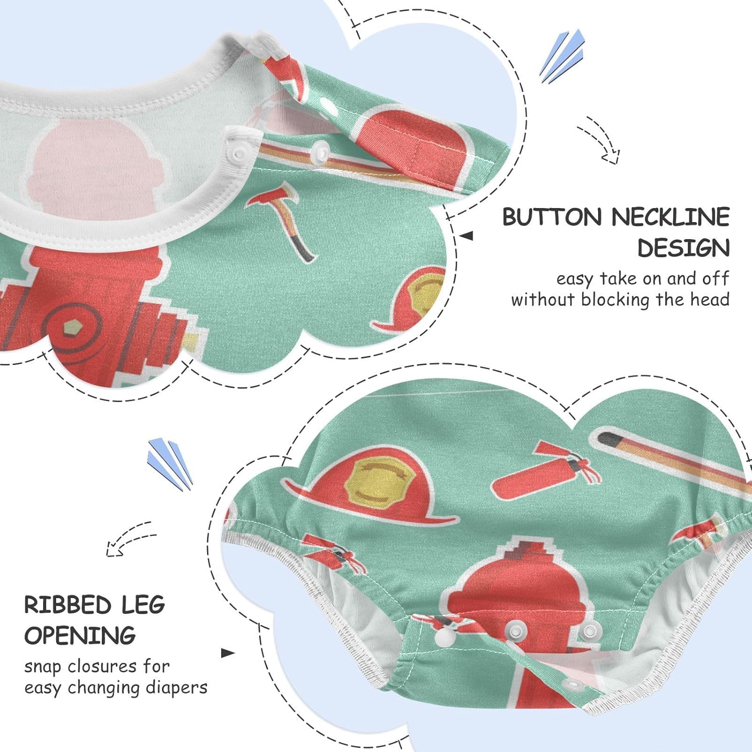 Wudan Fire Fighting Equipment Baby Boys Cotton Romper Bodysuits Newborn Infant Clothes Short Sleeve Jumpsuit Tops 6M