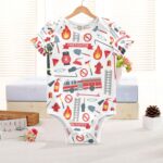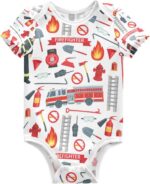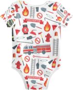 Wudan Firefighter Man Fire Fighting Equipment Baby Boy Bodysuits Short Sleeve Cotton for Baby Girl Newborn Toddler Infant 3M