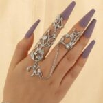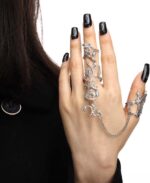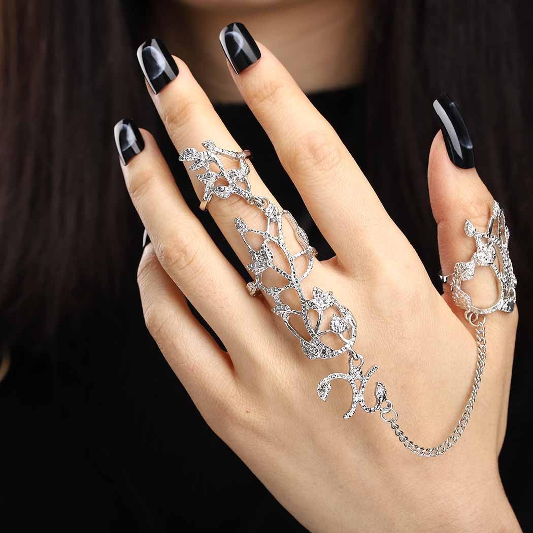 Black Flower Rhinestone Finger Rings Hand Chain for Women and Girls