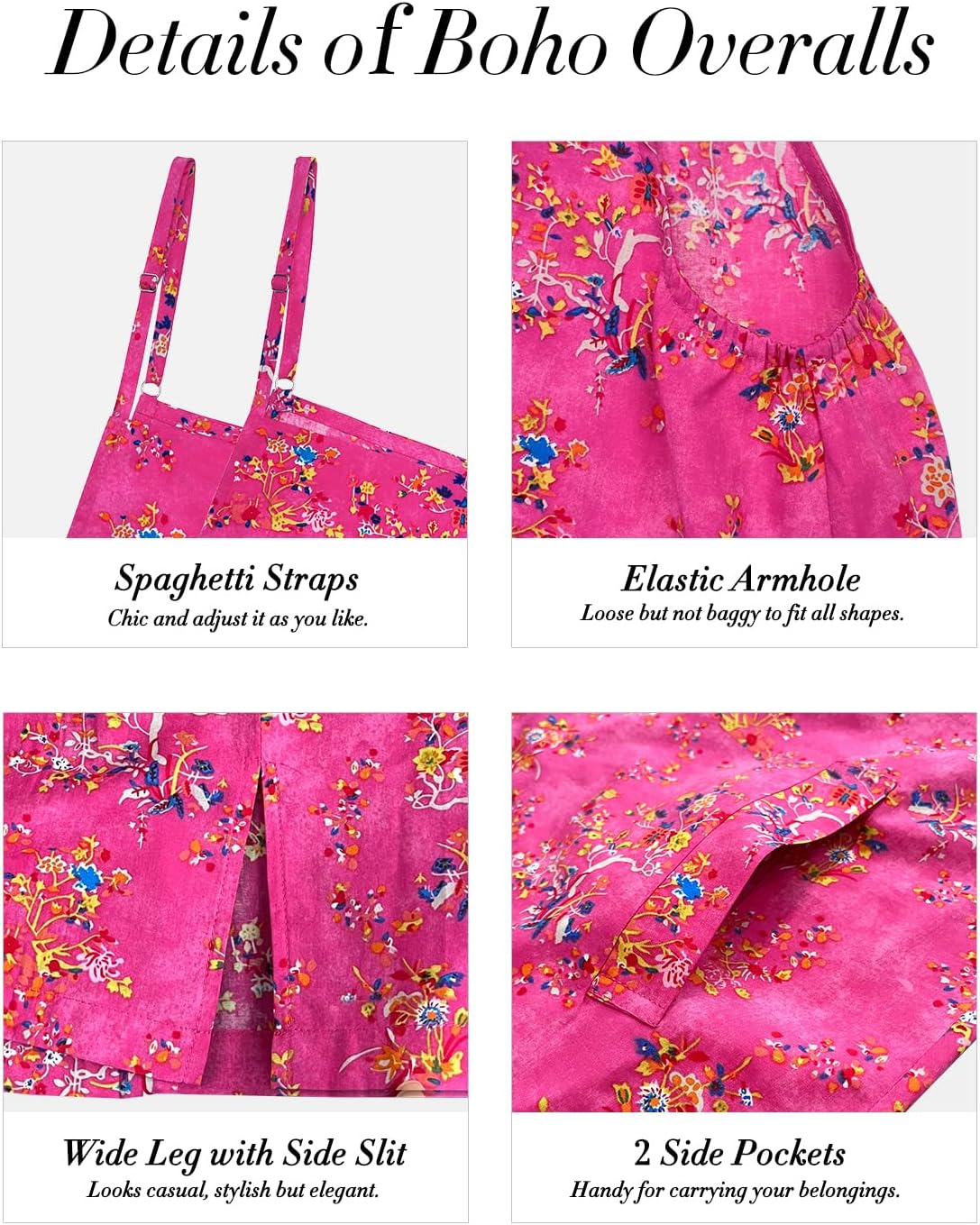 YESNO Women’s Summer Boho Casual Jumpsuits Wide Leg Overalls Floral Print Baggy Rompers with Pockets PZZCR